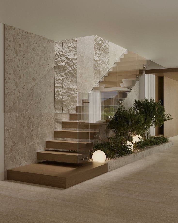 The open-plan kitchen dissolves into a matte travertine island, while the master suite features ceiling-suspended mirrors and floor-lit walkways. This residence is designed for a collector of light, silence, and sculpture with every millimetre fine-tuned to behave.